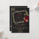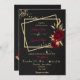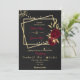 convite de casamento preto elegante luxo flores borgonha com algumas folhas douradas em dois retângulos dourados