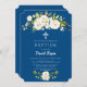 Design moderno e elegante, com rosas e molduras de creme branco de cor aquosa, na parte de trás do quadro floral, nome, sobre fundo azul clássico. Itens correspondentes podem ser encontrados na minha coleção de eventos religiosos encantadores.
