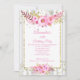 Convite Flores brancas cor-de-rosa claro, Dourada Festa de