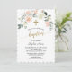 Convite Flores brancas cor-de-rosa, Dourado batismo cruzad