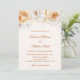 Este convite de casamento exude elegância eterno com sua design romântica e suave. O topo é enfeitado com delicados florais do estilo aquarela criados por IA em tons quentes de marfim, ouro e branco, criando um quadro gentil e gracioso. O layout é limpo e equilibrado, com uma mistura harmoniosa de fontes clássicas sans serif e um elegante roteiro manuscrito usado para os nomes da noiva e do noivo, acrescentando um toque pessoal e sofisticado. A estética geral é refinada e romântica — perfeita para uma celebração formal ou temática de jardim.