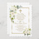 Design de cartão elegante com flores brancas delicadas, de cor aquosa e folhas verdes, uma falso estrutura dourada, uma cruz falsa de ouro, divisor floral, sobre fundo branco. No buquê das flores brancas. Use a ferramenta Personalizar para adicionar suas informações, alterar fontes, cores da fonte. Para encontrar itens, por favor, visite minha Santa Coleção de Comunhão.