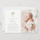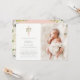Estes bonitos convites florais para as meninas do Batismo ou Natal apresentam uma cruz rosa pincelada com marfim de aquarela e flores brancas, e a foto do seu bebê.