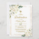 Flores Brancas e Dourado convite para a Dedicação de Menina com Barato de Framen impresso. Este bonito design tem uma aquarela de flores brancas com moldura de ouro. Personalize o design com os detalhes do partido Dedication do seu filho. O verso tem uma cruz dourada com flores de aquarela ou usa o espaço para adicionar texto e fotos adicionais. Clique em Personalizar para escolher qualquer cor de fundo e editar as fontes e cores do texto para criar um convite exclusivo de dedicação para a sua bebê.