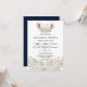 Design de Buquê de de de Rosas Brancas, Simples e Elegante. Ele apresenta belíssimos galhos de aquarela com buquê de rosas brancas, cor-de-rosa, na parte inferior um buquê com os mesmos rosas, todos sobre um fundo branco. No fundo azul marinho, setas com corações, flores e noiva e iniciais de noivos. Adicione suas informações. Para encontrar itens, por favor, visite minha Coleção de Anéis de Rosas Brancas.
