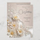 Convite Flores Brancas Florais De Beige De Casamento Elega