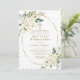 Design único e elegante, com flores brancas de cor aquosa buquê, falso quadro oval de ouro, cruz dourada; no buquê floral traseiro, iniciais, sobre fundo branco. Use a ferramenta Personalizar para adicionar suas informações. Para obter itens correspondentes, visite minha Coleção de Festas Batismo e primeiro aniversario.