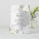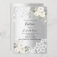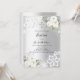 Um convite elegante ao batismo, neutro em relação ao gênero. Um fundo com aspecto fino prateado decorado com flores brancas, rosas, rendas e uma cruz. Personalize e adicione um nome e detalhes.