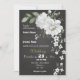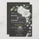 Lindas flores brancas com algumas folhas verdes sobre o fundo negro convite romântico ao casamento