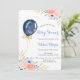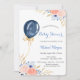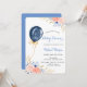 O convite para chá de fraldas bonito apresenta um balão azul com chá de fraldas de flores. Esses convites para chuveiros de bebês são facilmente personalizados para seu evento simplesmente adicionando seus detalhes.
