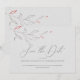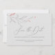 Elegante e simples ilustração à mão de design de flores. Fundo de textura de papel cinza claro. Salve a data - tipografia moderna. Toque de vermelho como um destaque.
