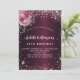 Para uma elegante festa de aniversário 40th (ou qualquer idade). Uma cor de fundo de gradiente burguês. Decorado com faíscas brilhantes e florais cor-de-rosa. Personalize e adicione um nome, idade e detalhes da festa. O nome é escrito com um script de estilo manuscrito