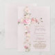 Convite flores cor-de-rosa cruz Primeira Comunhão