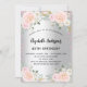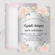 Um convite de aniversário moderno, na moda e glamouroso 40º (ou qualquer idade). Um fundo de aparência fina prateada com brilho sujo rosa, faíscas e florais cor-de-rosa. O nome é escrito com um moderno estilo escrito à mão. Personalize e adicione seus detalhes.