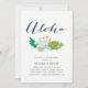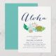 Aloha! Organizando um jantar de boas-vindas de casamento com tema havaiano ou luau antes do grande dia? Convide amigos e familiares com nossos convites de jantar de boas-vindas de casamento fofos, apresentando um buquê de flores tropicais em tons elegantes de praia, e "aloha" em letras de caligrafia moderna e sofisticada. O verso dos cartões é em aqua sólido.