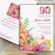 Flores De 90 Anos - Convite De Aniversário Para 90 De Aquarela. Comemore um aniversário de um marco em estilo com este vibrante convite de aniversário floral. Apresentando um "90" ousado, com padrão floral no topo e um jardim luxuoso de flores coloridas no fundo, este design exalta encanto e elegância. Com texto personalizável para o nome, data, hora e local da honraria, é perfeito para comemorações de primavera ou de verão. Um sotaque de borboleta adiciona um toque caprichoso, fazer uma escolha ideal para festas inspiradas na natureza ou com temas de jardim. Aproveite!