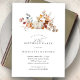 Abóbora branca moderna e elegante e flores de queda design floral. A paleta de aquarelas moles é uma sofisticada mistura de cor-de-rosa macio e ouro amarelo e castanho rico em escuro. A queda deixa à volta da abóbora branca para uma apresentação especial no outono. Perfeito para a sua festa de aniversário de outono.