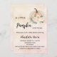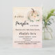 Um fundo de rosa dourado e gradiente cor-de-rosa esmagado, decorado com uma abóbora e flores de cor creme. Personalize e adicione o nome e os detalhes da festa. Texto: Um pouco de Abóbora está a caminho.