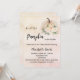 Um fundo de rosa dourado e gradiente cor-de-rosa esmagado, decorado com uma abóbora e flores de cor creme. Personalize e adicione o nome e os detalhes da festa. Texto: Um pouco de Abóbora está a caminho.
