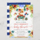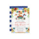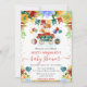 Flores amarelas, azuis e vermelhas da Aquarela e design de Fox com balões, bundas, confete e bordas de confete dourado