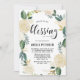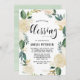 Convite elegante e caprichoso para bênção de bebês, com padrão floral de cor aquosa, com sotaques falsos de ouro e flautas de brilho dourado - não existe folha de ouro ou brilho. O convite para a coroa floral é perfeito para bênçãos primavera. Personalize adicionando nomes, data, hora, local e outros detalhes do evento.