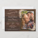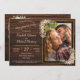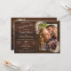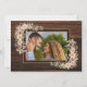 Este convite de festa de noivado rústico de madeira apresenta 2 fotos modelo do casal feliz e elásticas elegantes de flores de aquarelas que as enquadram...