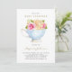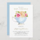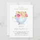 Junte-se a nós para uma festa de chá! Convide a família e os amigos para o seu evento com este convite personalizável para o bebê aspersor. Apresenta a ilustração aquarela de uma equipe com um buquê rosa. Personalize adicionando seus detalhes. Este convite floral para o bebê é perfeito para eventos de primavera e jardim.