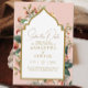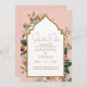 belas flores cor-de-rosa de pêssego personalizadas salvem as datas com sotaques dourados. Com um elegante design floral de aquarela estes convites são perfeitos para o seu evento. Localizar itens correspondentes no meu compro.