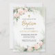 Convite Flores de Aquarela Rosa Elegantes Batismo Verde