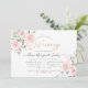 Flores aquarelas, Rosas cor-de-rosa pinceladas, hidrangea branca e folhagem verde-sábio, um convite para bênção. Acentuado com o elegante e moderno falso roteiro manuscrito de bênção Convites. Cor do plano de fundo DIY.