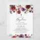 Convide familiares e amigos com este convite para o batismo floral. Apresenta a ilustração aquosa de púrpura, vermelha, marfim e pincelada, cor-de-rosa, e padrão floral correspondente. Personalize adicionando nomes, hora, data, local, endereço e outros detalhes. Este convite floral é perfeito para o outono ou para o outono.