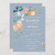 Convite Flores De Aquarela Vidro De Champanhe Azul Dusty