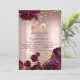 Convite Flores de Burgundy Rosa de Brilhante Dourado 60º A