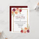 Convite de casamento floral vermelho burgundy lindo com uma bela moldura d