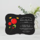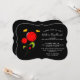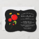 Uma ilustração caprichosa com várias flores vermelhas com grandes corações ligados a um caule verde. 2 borboletas amarelas pairando por perto. Definido em um fundo preto. Personalize este convite de brunch do dia das mães com os detalhes da sua festa.