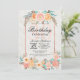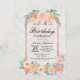 Flores de coral, laranja, cor-de-rosa e lacrimejante e esboços de rosa, Convites de festas de aniversários. Este design clássico e sofisticado é perfeito para o indivíduo clássico, na moda e tradicional de Aniversário. Personalize com sua própria mensagem na frente e monograma personalizado no verso. Todos os impressão
