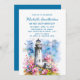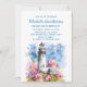 Encantador 100º convite de aniversário com pintura aquosa de cena náutica de um farol bonito cercado por flores rosa. Entre em contato comigo para obter assistência com a personalização ou para solicitar correspondência ou coordenar produtos Zazzle