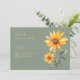 Celebre seus convites especiais de RSVP de Casamento ao estilo do país com nossa elegante design de convite para girassol verde e amarelo. Nosso design apresenta nossos ouros-d-água pintados manualmente, girassóis amarelos, esses detalhes elegantes do convite ao país são lindamente projetados para criar este simples mas elegante convite para casamento. Personalize este design com sua mensagem e informações personalizadas. Todas as designs são impressas.