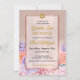 Edite o texto para personalizar este anúncio elegante do Bat Mitzvah da sua filha. Nossos jovens artistas gráficos judeus criaram este convite. O Magen David (Estrela de David) e o quadro metálico de ouro-rosa flutuam sobre um fundo de coloração aquosa de flores e rosa dourada. Não é utilizada qualquer folha de ouro ou brilho real nesta fabricação do cartão. Você ficará impressionado com a alta qualidade e a impressão a cores vívidas. Mazal Tov!