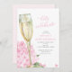 Este lindo design apresenta flores de hortênsia rosa, um copo de champanhe dourado e seu texto personalizado. Use o formulário de modelo para adicionar suas informações.