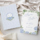 Esta bela design apresenta flores azuis de hydrangea e seu texto personalizado. No verso está uma crista pintada a aquarela com fita e hydrangeas. Use o formulário modelo para adicionar suas informações.