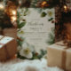 Traga elegância eterno aos seus cartões de natal com este design de Natal verde e branco. Apresentando flores de inverno, galhos de pinheiros verdes e sotaques naturais suaves, ele captura perfeitamente o charme pacífico da estação. A combinação de flores delicadas e verde rústico faz dela uma escolha refinada, mas acolhedora, para espalhar alegria festiva.