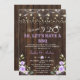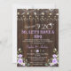 Luzes de Corda de Madeira Antiga Encantadoras; Depois que dissemos EU FAÇO, vamos fazer um churrasco. Design de cartão único com luzes de corda, cantos de flores de lavanda em aquarela elegante, "EU FAÇO" com um anel substituindo a letra "O", em um fundo de madeira de celeiro marrom. Use a ferramenta Personalizar para adicionar suas informações. Veja também minha Coleção de Flores de Lavanda.