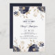 Convide família e amigos para sua doce festa de dezesseis com este convite elegante. Apresenta flores e folhagem azuis e marfim marinhos, com folhas de golfe falso e acentos de brilho. Personalize adicionando seus próprios detalhes de evento. Você também pode adicionar uma foto ou outra imagem no verso do convite. Este convite floral é perfeito para eventos de primavera e inverno.