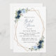 Convide amigos e família de estilo e dê o tom para o seu dia especial com este chá de panela encantador. Design apresenta flores marinhos e azuis de cor d'água, tela verde e estrutura dourada sobre fundo branco.