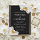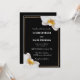 Defina um tom de romance atemporal para o seu dia especial com este sofisticado convite de casamento preto e branco. Este design apresenta um fundo preto profundo e sólido que fornece um contraste dramático e moderno para as delicadas flores de orquídea brancas colocadas graciosamente nos cantos. Uma moldura com aparência dourada brilhante emoldura o design, adicionando um acabamento luxuoso e refinado à apresentação geral.