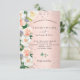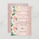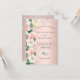 Um convite de casamento floral colorido e moderno em dourado rosa, branco e rosa bege. Um fundo metálico falso de ouro rosa na frente. Decorado com flores grandes e exuberantes pintadas à aguarela, flores em branco, ouro rosa, rosa bege com alguma folhagem e brilho de diamante falso rosa. Personalize e adicione seus nomes e detalhes do casamento. Texto preto.
