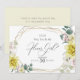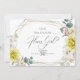 CONVITE PARA PROPOSTA DE FESTA DE NOIVA | Formas geométricas com tons de flores amarelas ensolaradas, e magnólias e peônias marfim rosado - um belo porta-retrato geométrico dourado com múltiplas facetas em estilo terrário adornado com folhagens e arranjos florais. O verso é uma cor coordenada complementar. Personalize o texto, o estilo da fonte, a cor e o tamanho. Arte original criada para a BarefootBride™ por © WhimsicalArtwork™ - Esta é parte de uma Suíte de Papelaria de Casamento completa com papelaria de casamento, chá de bebê e outros eventos.