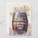 Bonito convite para o seu casamento feito em uma adega ou celeiro rústico. Cano velho de uísque com flores bonito da primavera. Personalize para criar seu convite perfeito. Conteúdo genérico