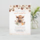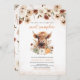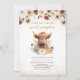 Celebrar o pequeno a caminho com o nosso Convite para Chá de fraldas de Vaca nas Flores de Queda! Esta charmosa design apresenta uma doce menina Highland vaca rodeada por abóboras e flores caídas no centro da modelo, com flores adicionais caindo agarrando o topo. Perfeito para um chá de outono, este convite traz um toque de elegância rústica e calor para o seu evento especial. BBS877